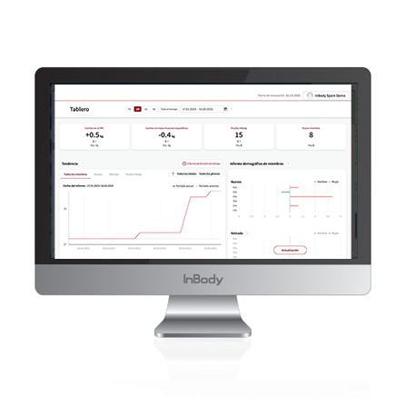 - Se integra con el tensiómetro BPBIO y con el tallímetro BSM170 (ambos de InBody) para incorporar los datos de presión arterial y altura